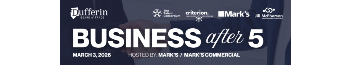 Our first event of the year will be hosted by our newest DBOT member, Mark's Orangeville in their new Mark’s Commercial Space, in partnership with Criterion Business Solutions on March 3rd from 6:00–8:00 PM. This evening is designed to help you build meaningful connections, grow your network, and discover local businesses in our community.